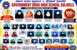 ಸೂಲಿಬೆಲೆ : ಇಲ್ಲಿನ ಸರಕಾರಿ ಉರ್ದು ಪ್ರೌಢಶಾಲೆಯ ವಿದ್ಯಾರ್ಥಿಗಳು ಈ ಬಾರಿ ನಡೆದ ಎಸ್ಸೆಸ್ಸೆಲ್ಸಿ ಪರೀಕ್ಷೆಯಲ್ಲಿ ಶೇ. ೧೦೦ ರಷ್ಟು ಫಲಿತಾಂಶವನ್ನು ಸಾಧಿಸಿದ್ದಾರೆ.